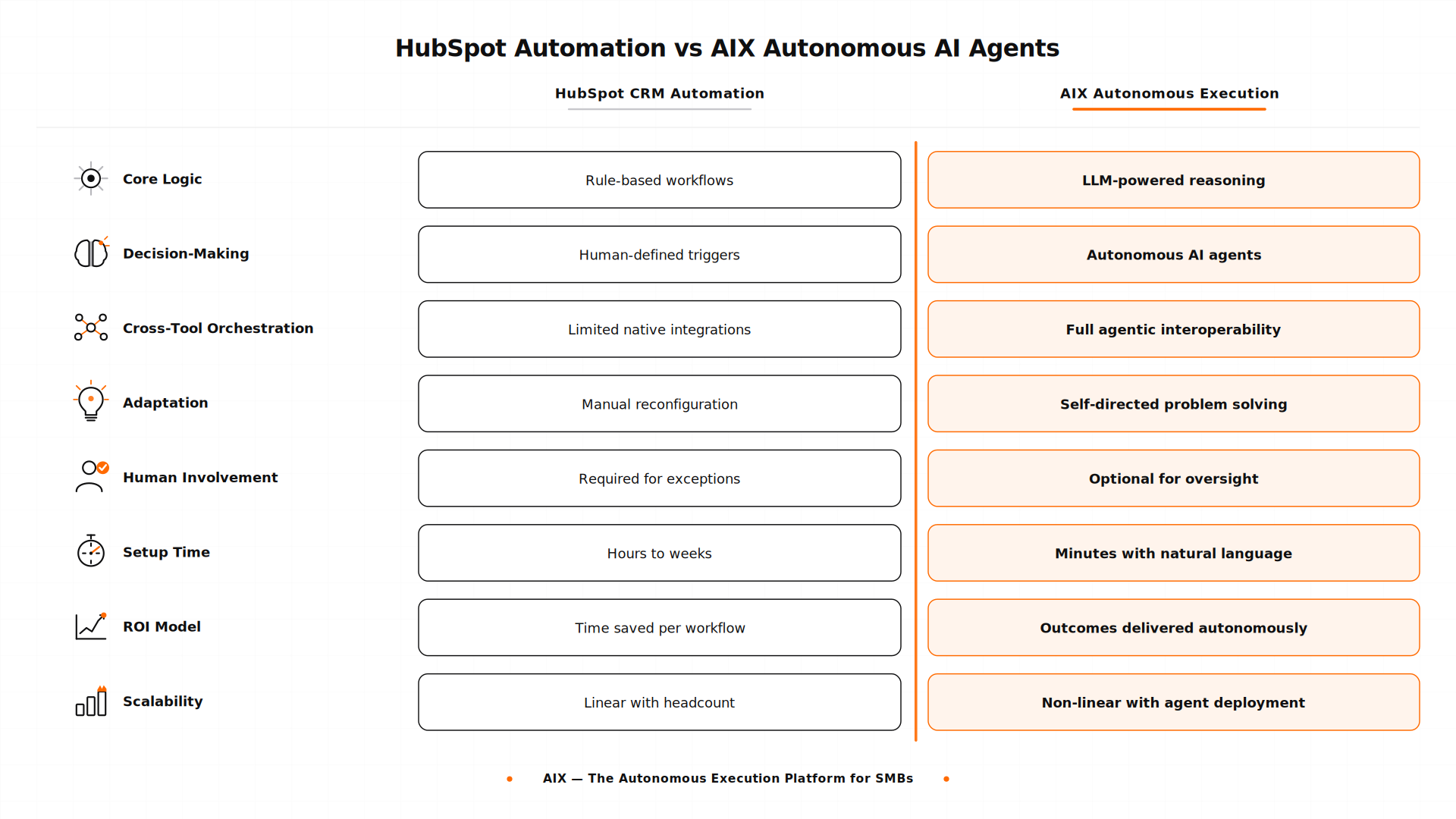 Key Differences: HubSpot Automation vs AI Xccelerate Autonomous AI Agents